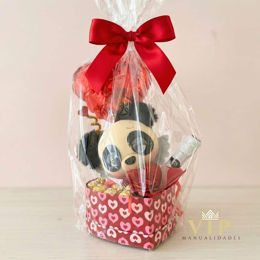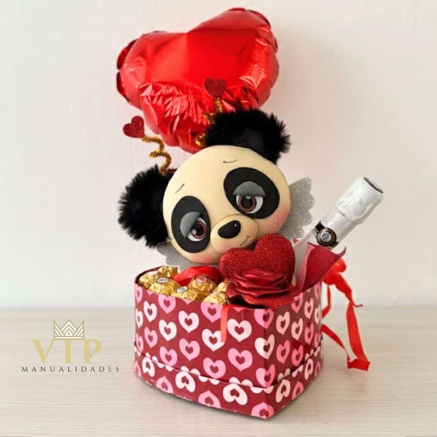 Este arreglo combina dulces, detalles especiales y una figura artesanal modelada a mano en goma EVA con volumen 2D, creando un conjunto único que no encontrarás en producción industrial.