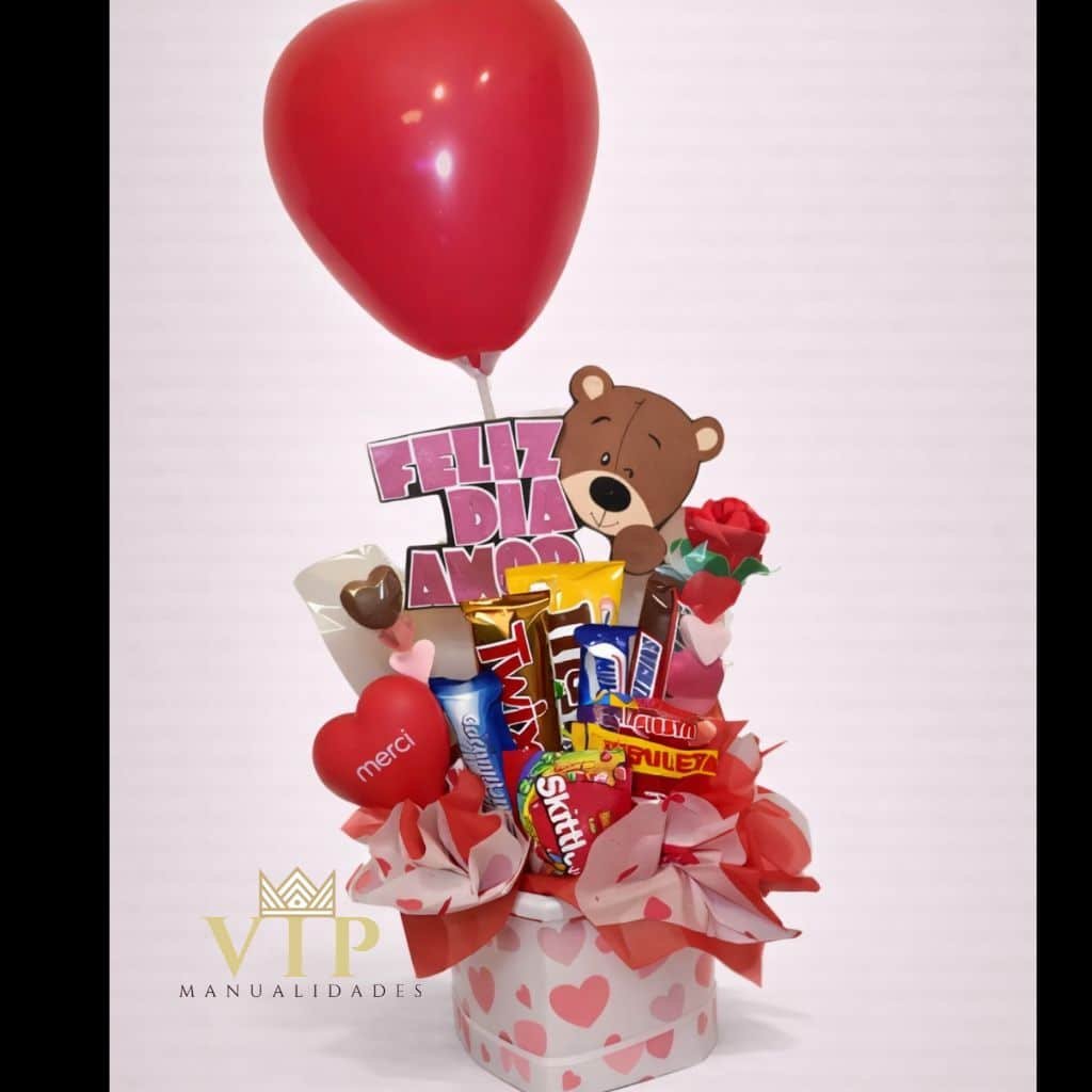 Esta caja regalo es perfecta para sorprender con un detalle bonito, divertido y listo para regalar. Combina una rosa eterna, dulces variados y un corazón squishie que aporta un toque original y desenfadado, ideal tanto para niños como para adultos.