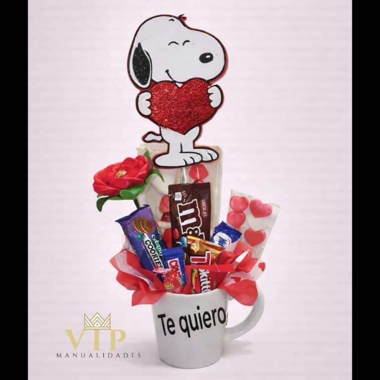 Taza Regalo San Valentín con Dulces y perrito Enamorado – Hecho a Mano